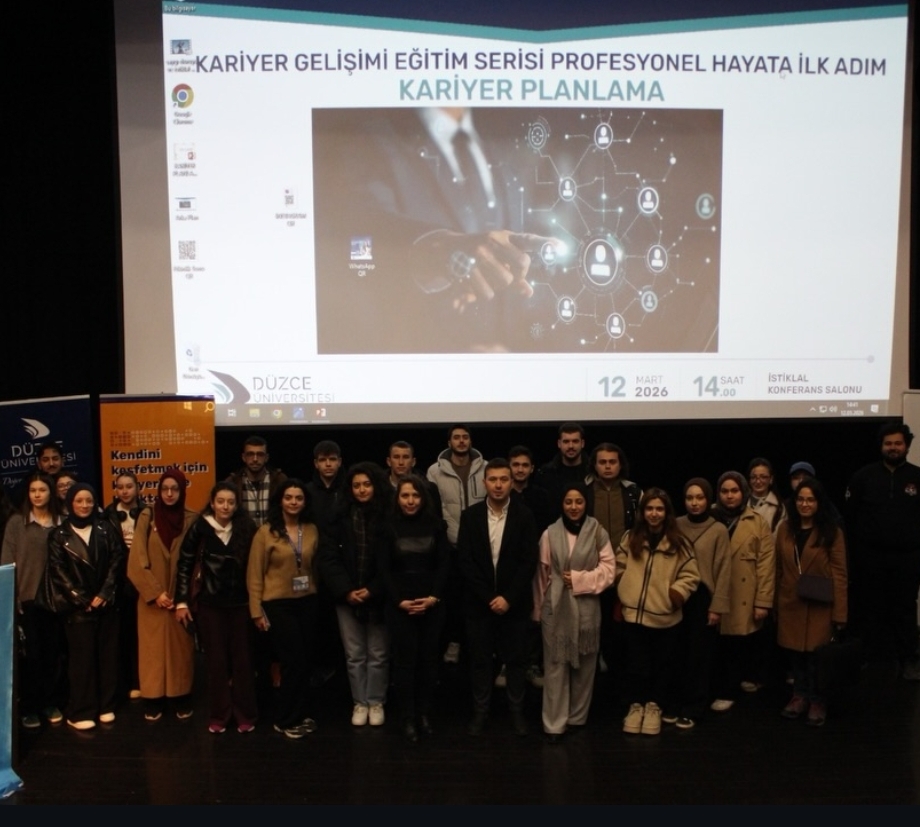 Düzce İŞKUR ile Düzce Üniversitesi Kariyer Geliştirme ve Mezun İzleme Uygulama Araştırma Merkezi iş birliğinde yürütülen Kariyer Gelişim Eğitim Serisinin üçüncü etkinliği, öğrencilerin kariyer hedeflerini daha bilinçli şekilde belirlemelerine katkı sunmayı amaçlayan “Kariyer Planlama” eğitimi ile gerçekleştirildi.