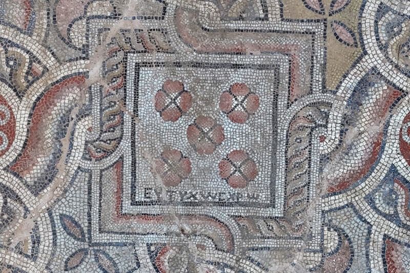 aşık 1.500 yıllık bir konutun girişinde dikkat çekici bir yazıt içeren zemin mozaiği keşfedildi.