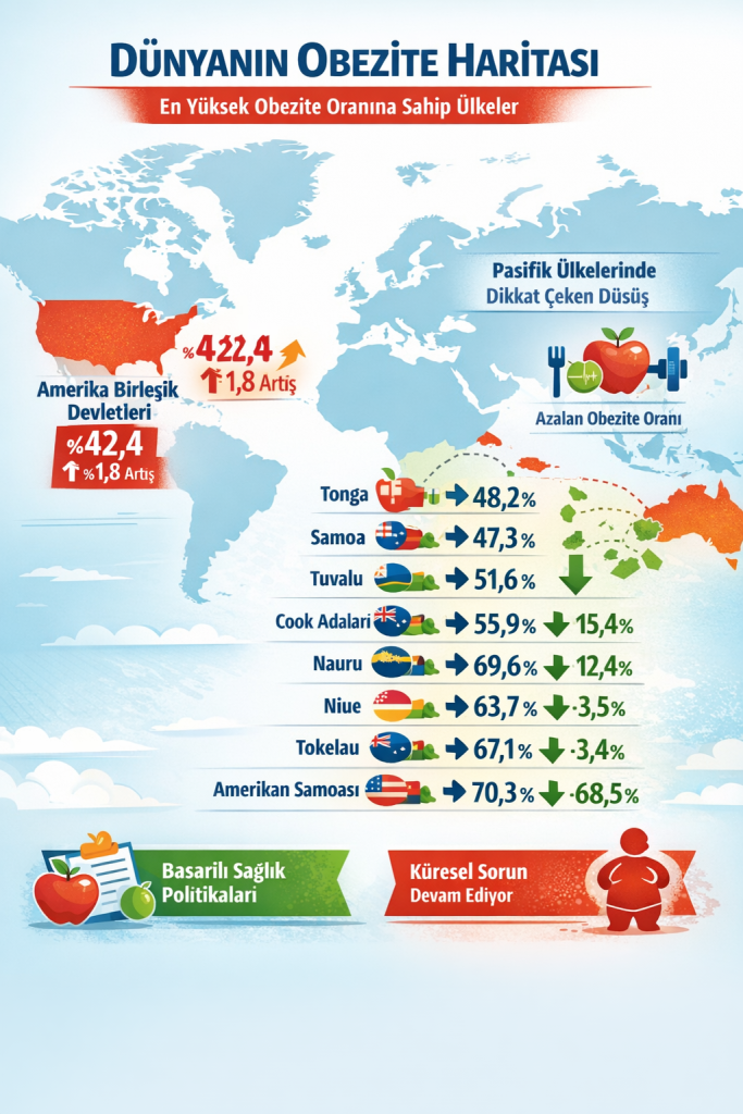 Dünya genelinde obezite oranları artmaya devam ederken, bazı ülkelerde uygulanan sağlık politikaları sayesinde düşüş sinyalleri görülüyor. Son veriler, özellikle Pasifik ada ülkelerinde yüksek oranların sürdüğünü, ancak önemli iyileşmelerin de başladığını ortaya koyuyor.